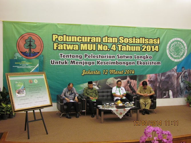 “Dikeluarkannya fatwa ini merupakan tonggak sejarah penting untuk mengawal langkah perbaikan, penyelamatan dan pelestarian lingkungan yang kian kritis,” ujar Ketua Umum MUI Din Syamsuddin dalam peluncuran Fatwa MUI tentang Pelestarian Satwa Langka untuk Menjaga Keseimbangan Ekosistem di Schmutzer Media Center, Ragunan, Jakarta, pada Rabu (12/3). Hadir dalam acara itu Menteri Kehutanan Zulkifli Hasan dan perwakilan dari Pemerintah Provinsi DKI Jakarta.