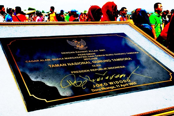 Dompu, Ekuatorial – Presiden Indonesia, Joko Widodo (Jokowi) resmi meresmikan daerah gunung Tambora di Nusa Tenggara Barat (NTB) menjadi Taman Nasional. Peresmian dilakukan pada hari Sabtu (11/4) di Doro Ncanga, Dompu, NTB.