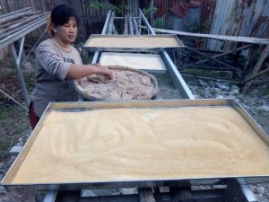 “Tahun pertama itu produksinya sedikit dan hasilnya belum bagus. Misalnya, tepung yang dihasilkan ada jamurnya,” kenangnya. “Baru pada tahun kedua, [kami] sudah tahu membuat beras jagung yang bagus tanpa jamur. Lalu, kami baru jual ke swalayan dan pameran.”