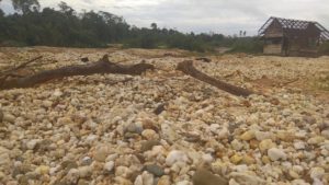 Kerusakan tampak nyata, kolam kolam kecil bermunculan, berakumulasi dalam waktu, dan menciptakan kubangan luar biasa luas. Struktur tanah hancur. Sawah, kebun, berubah daratan batu putih yang gersang. Kawasan sungai yang punya kandungan emas lebih baik ikut porak-poranda.