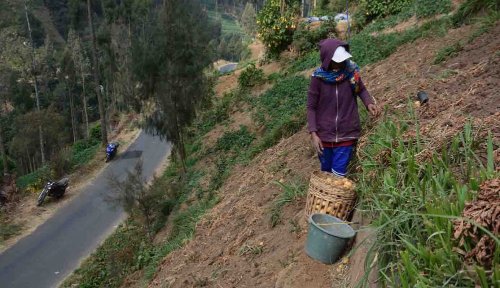 Bagi petani di ketinggian Pegunungan Tengger, bertani merupakan mata pencaharian pokok. Namun bertani di lahan berkemiringan ekstrim meningkatkan risiko, dan mempercepat kerusakan tanah.