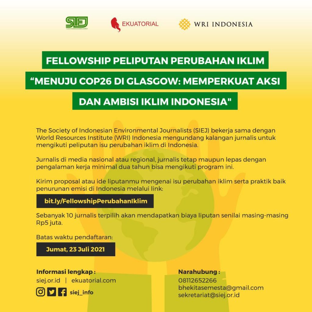 SIEJ dan WRI akan pilih 10 jurnalis untuk mengikuti program pelatihan dan peliputan isu perubahan iklim di Indonesia.
