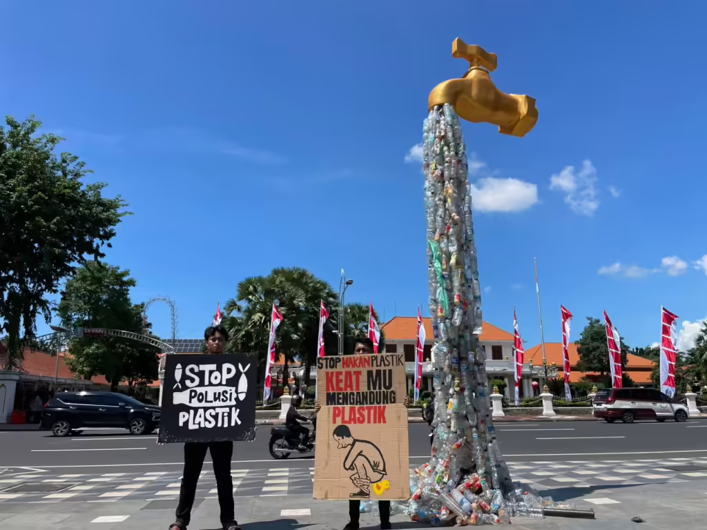 Aksi simbolik ini menyoroti krisis sampah plastik dan mengajak masyarakat mengurangi penggunaan plastik sekali pakai, terutama di bulan Ramadan.